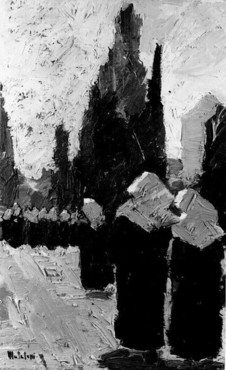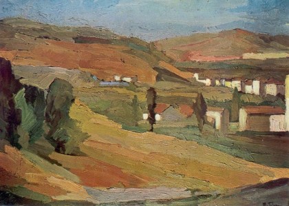 Nacquero fin da allora i paesaggi di intonazione post-impressionistica percorsi da una vena sottilmente elegiaca, costruiti con colori nitidamente stesi e desunti da una tavolozza in cui dominavano preziosità di grigi che si stemperavano nelle fluide campiture dei cieli, di verdi usati nella estesa timbrica delle possibili variazioni di azzurri ora tenui, ora radiosi.