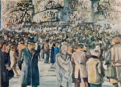 L’invenzione sta nel concepire queste masse “utili” ad agire dentro un mondo di sensazioni, restituite ad una seconda vita dal pittore con la complicità impressionistica. Luci e cromia freschissime, masse tenute nella sintesi giusta, per cui non c’è punto che sbilanci nella fitta assemblea.